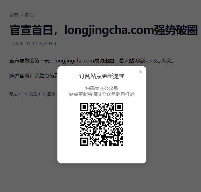 扫码关注公众号即可获取longjingcha.com网站最新动态